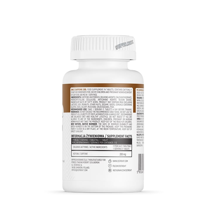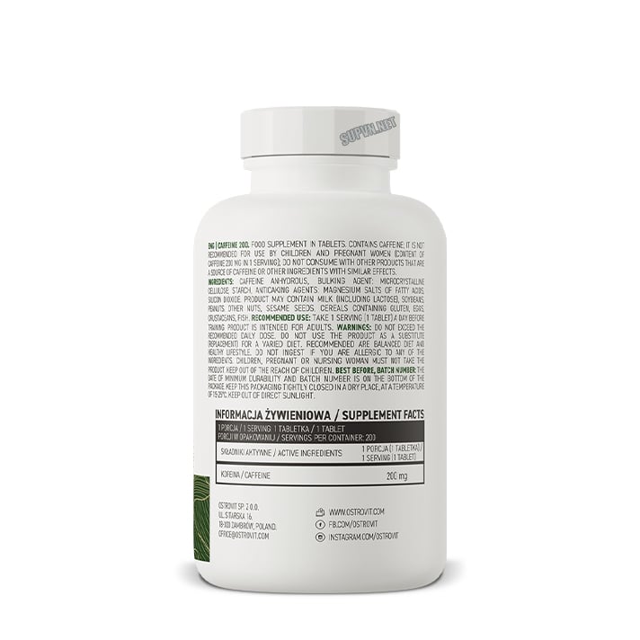 Cái tên của sản phẩm đã nói lên tất cả. Thành phần chính của mỗi viên nén bao gồm 200mg Caffein dạng khan và nguyên chất. Cũng khá gần với thói quen uống cà phê hằng ngày của bạn, việc sử dụng OstroVit Caffein 200 có tác dụng mang lại sự tỉnh táo cần thiết để có thể tập trung và đạt hiệu quả tốt nhất trong công việc. Tuy nhiên, rất có thể ly cà phê mà bạn dùng hằng ngày có hàm lượng Caffein rất thấp so với nhu cầu cần dùng. Đó là lý do vì sao một số người sau một thời gian dùng loại thức uống này lại cảm thấy không còn tác dụng hay “áp phê” gì nữa.