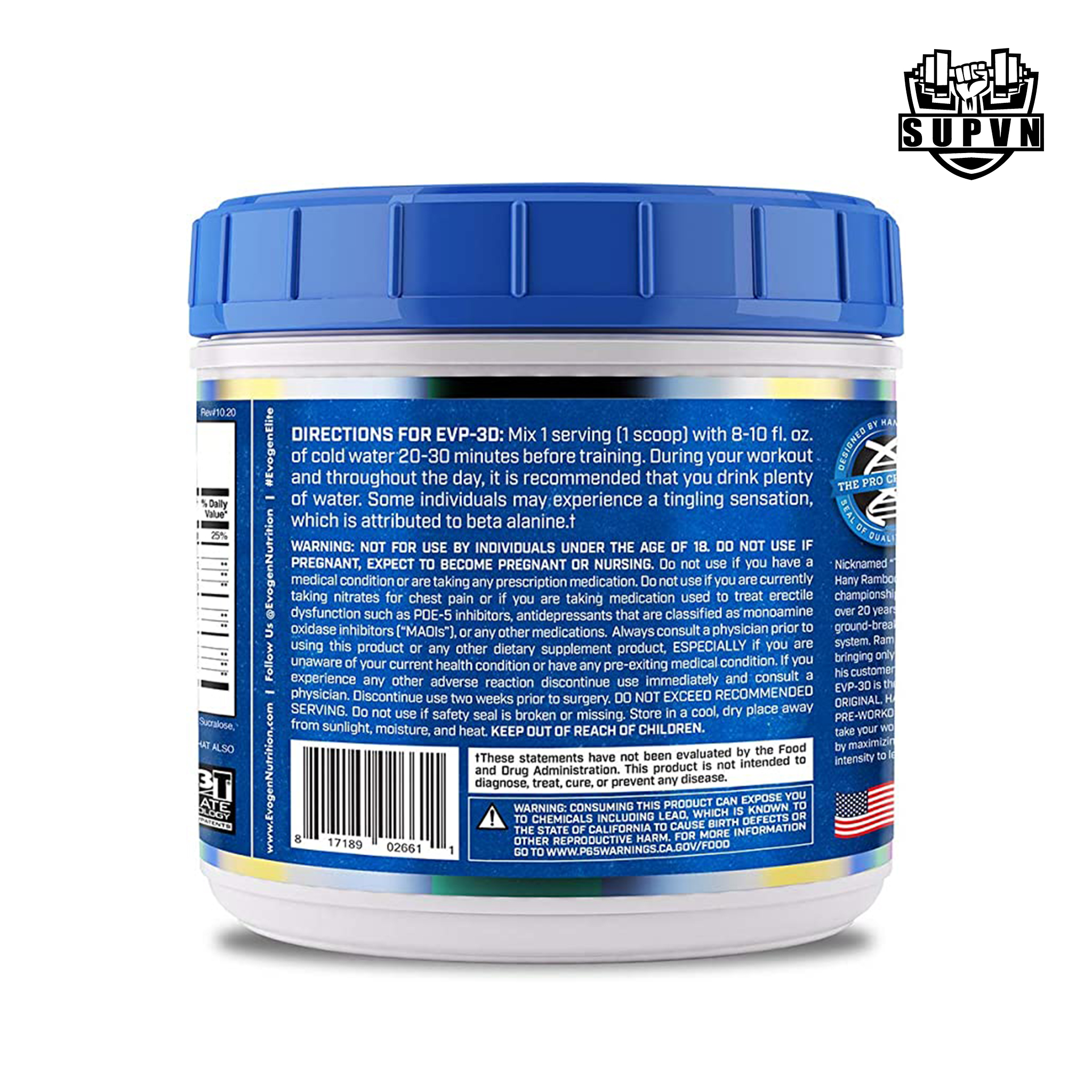 Việc sở hữu EVP 3D chính hãng đã không còn khó khăn khi bạn biết đến Supvn. Với kinh nghiệm nhiều năm trong lĩnh vực thể hình chúng tôi luôn kỹ lưỡng trong việc tìm kiếm và phân phối các loại TPBS, để qua đó mang đến tay người tiêu dùng Việt những sản phẩm chất lượng cao, uy tín trên thế giới. Chúng tôi mong muốn “người Việt Nam dùng thực phẩm sạch”.