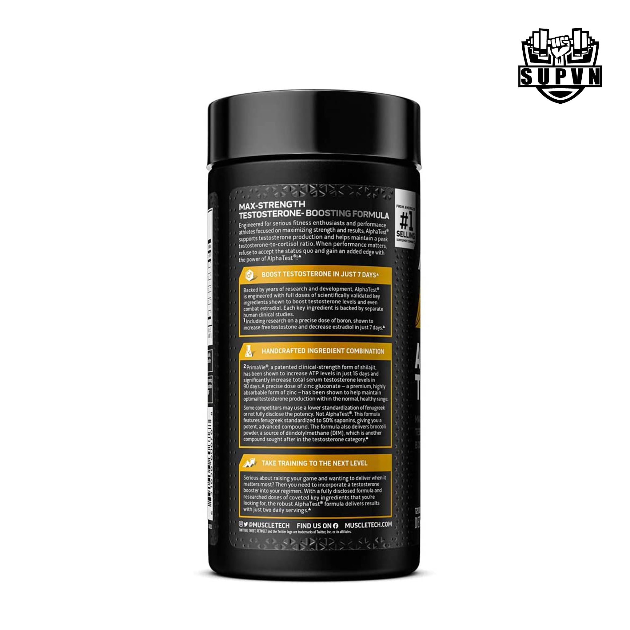 Alpha Test là một dòng sản phẩm được sản xuất dưới dạng thực phẩm bổ sung viên uống, có tác dụng điều chỉnh và tăng cường nồng độ cũng như hoạt tính của Testosterone. Sản phẩm được Thương hiệu MuscleTech nghiên cứu và phát triển giúp kích thích Testosterone tự do, duy trì tỷ lệ giữa hai loại Hormone là Testosterone (nam giới) và Estrogel (nữ giới), đồng thời cung cấp nguồn năng lượng dưới dạng ATP.